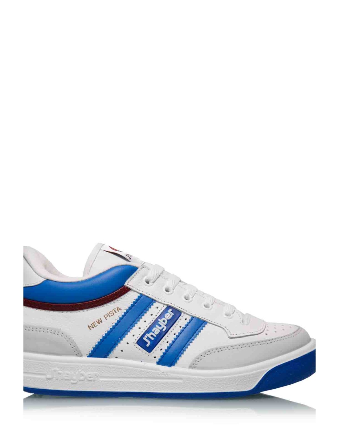 Deportivo J-hayber New Olimpo clásico en color blanco para hombre, realizado en piel con perforaciones de ventilación en puntera y laterales, forro interior textil y plantilla extraíble para una mayor higiene. Además tiene la lengüeta acolchada que junto con el cuello de la zapatilla hacen que se amolde perfectamente al tobillo. Piso inyectado de poliuretano de doble densidad para un mayor confort y agarre.