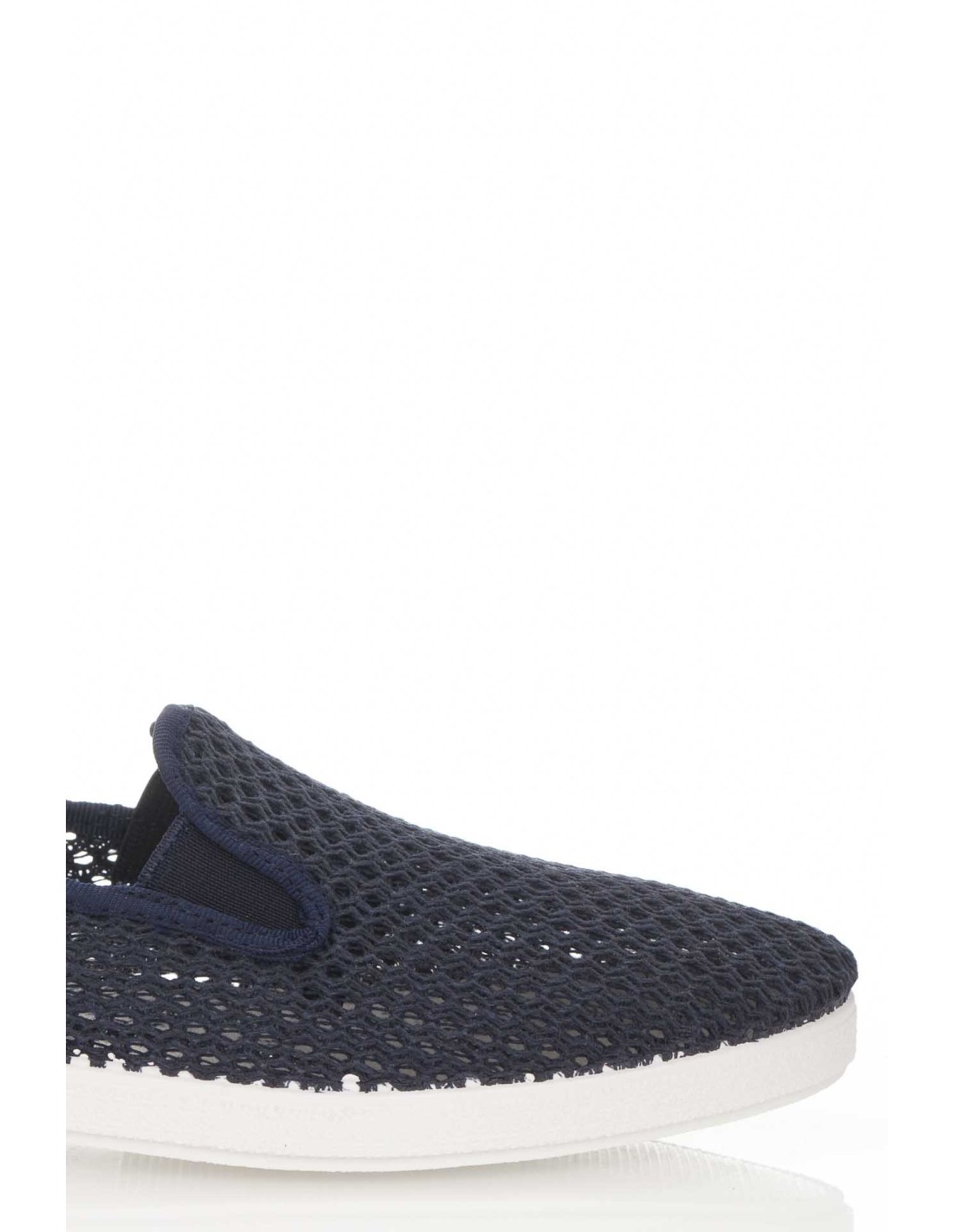Alpargata de hombre con elásticos en los laterales que garantizan una mayor de sujeción. Realizada en rejilla textil transpirable y piso de caucho vulcanizado. Fabricado en España.