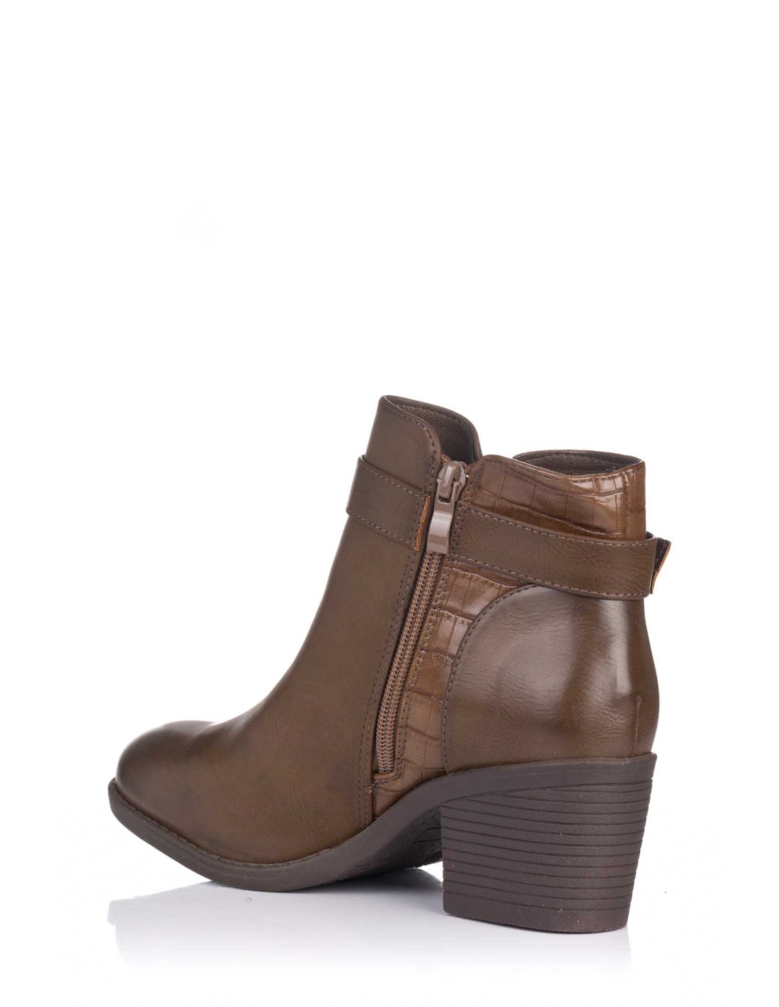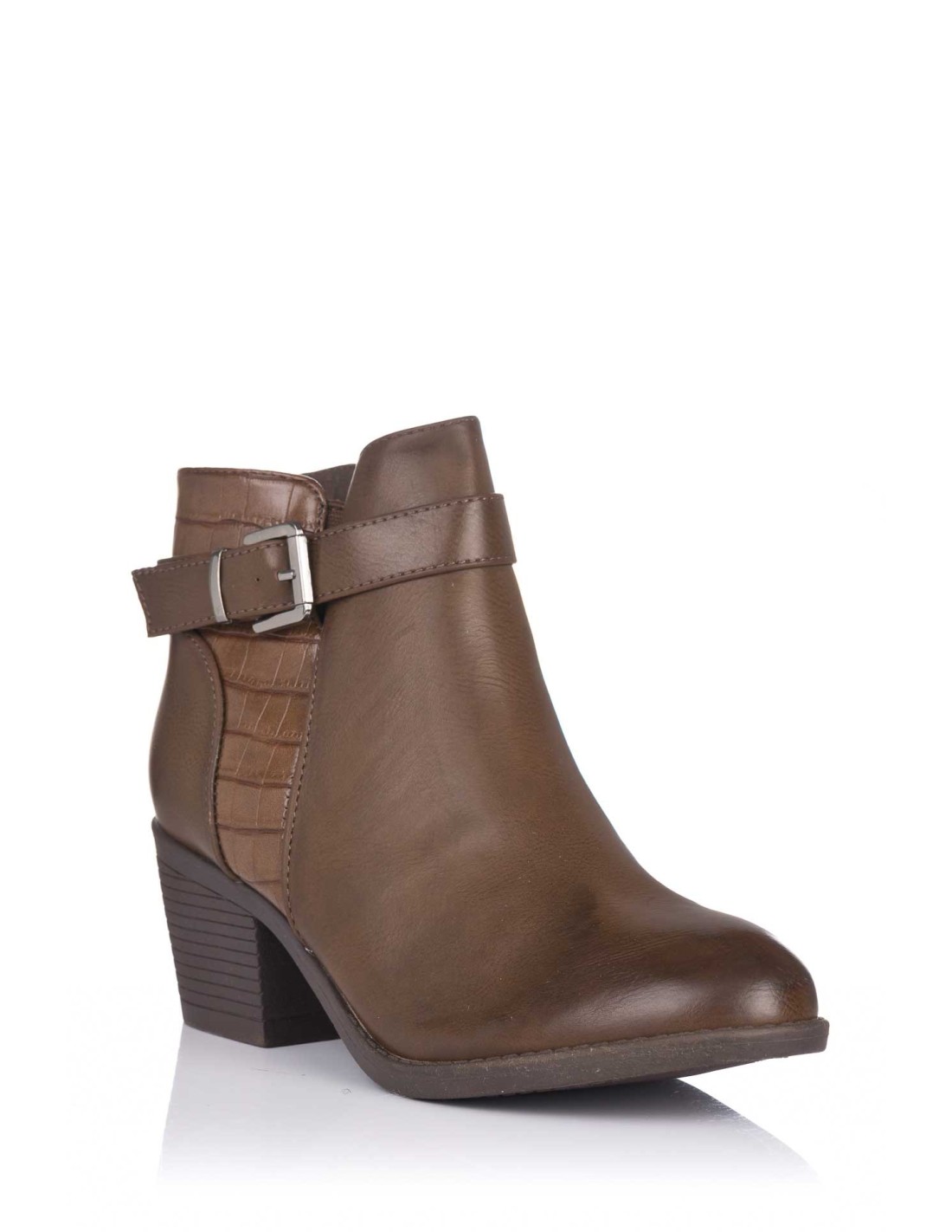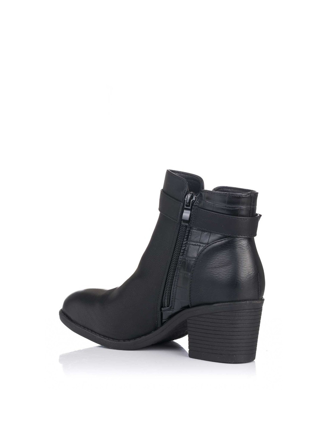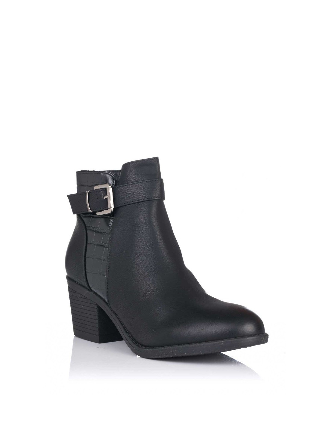 Botín para mujer de la marca Annalisa, realizado en material sintético grabado y liso con forro textil y tacón bajo. Cierre mediante cremallera interior y adorno de tira con hebilla en el tobillo. Detalle de tirador trasero para facilitar el calce.