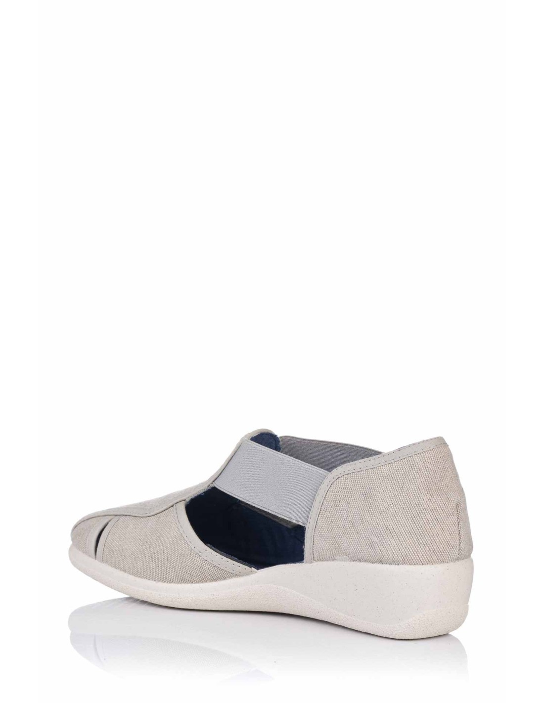 Sandalia plana en lona textil para mujer, con suela de goma flexible son ideales para pies delicados que buscan el máximo confort. De fácil y ágil calce gracias a los elásticos laterales. Fabricado en España.