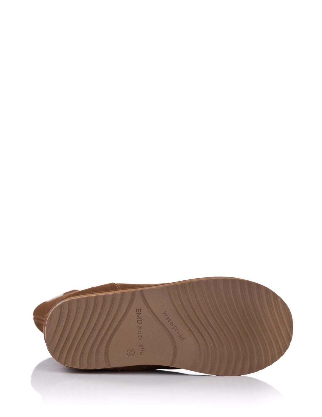 Bota de la marca australiana Emu para niña, realizada en piel ante de primera calidad con forro 100- lana merina australiana y membrana impermeable “waterproof”. Cremallera lateral de metal para facilitar su calce. Con detalle de logo engomado en la parte trasera. Entre suela de EVA suave para mayor comodidad. Suela de goma duradera y flexible con diseño ondulado para tracción y agarre.