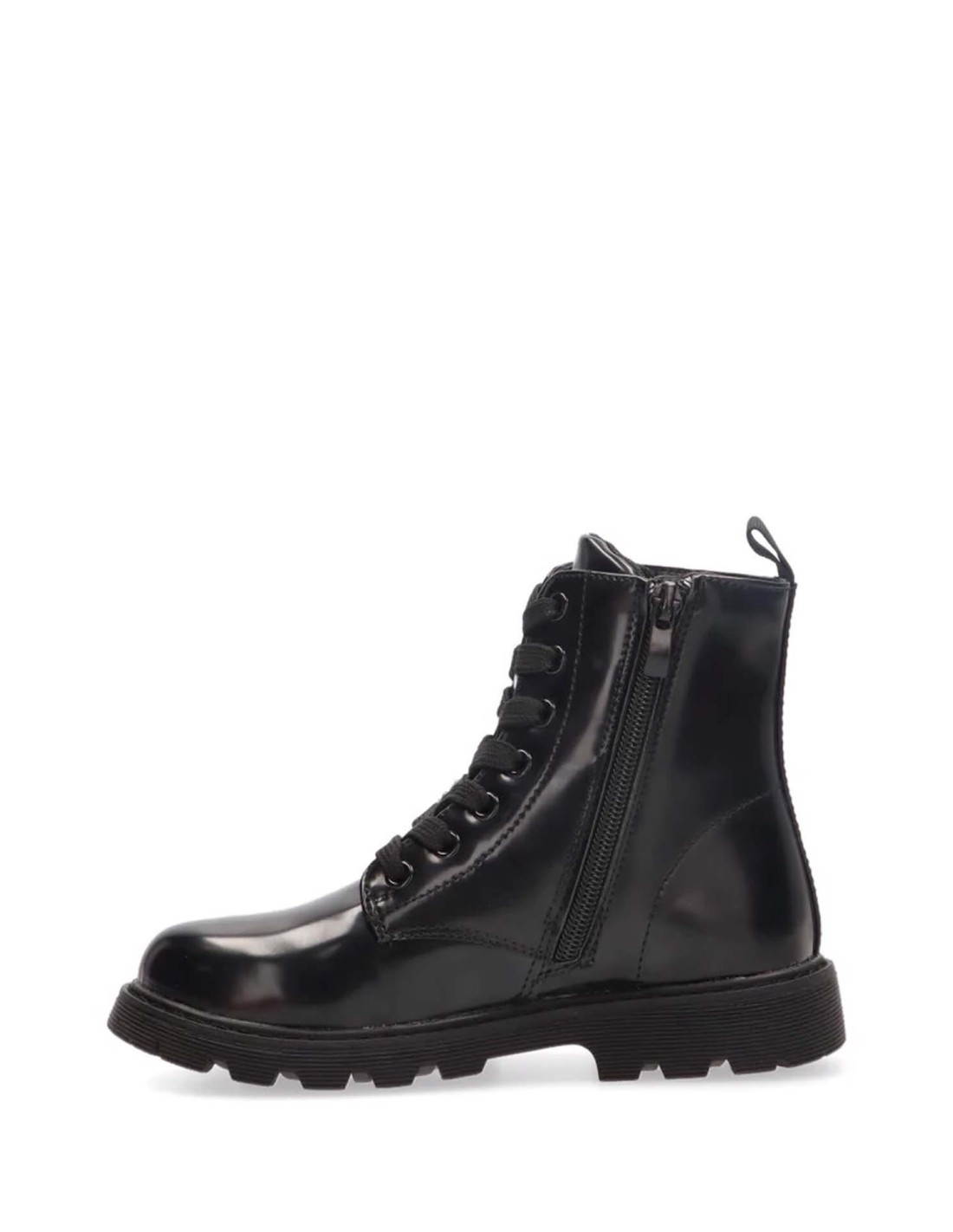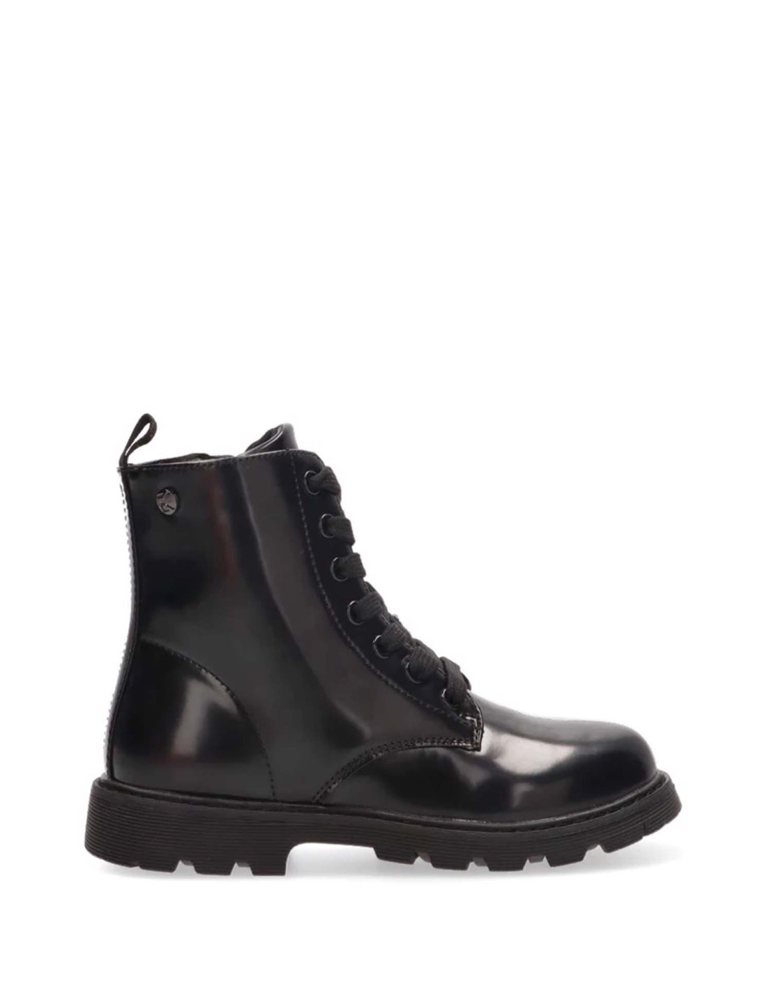 Bota militar la marca Étika para niña, realizado en piel sintética. Forro textil con cremallera en el lateral interior y cordón para facilitar el calce. Plantilla extraíble para una mayor comodidad e higiene.