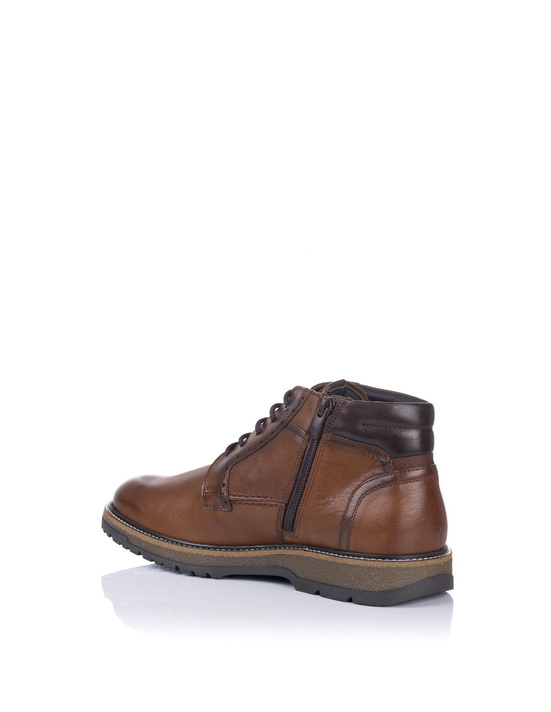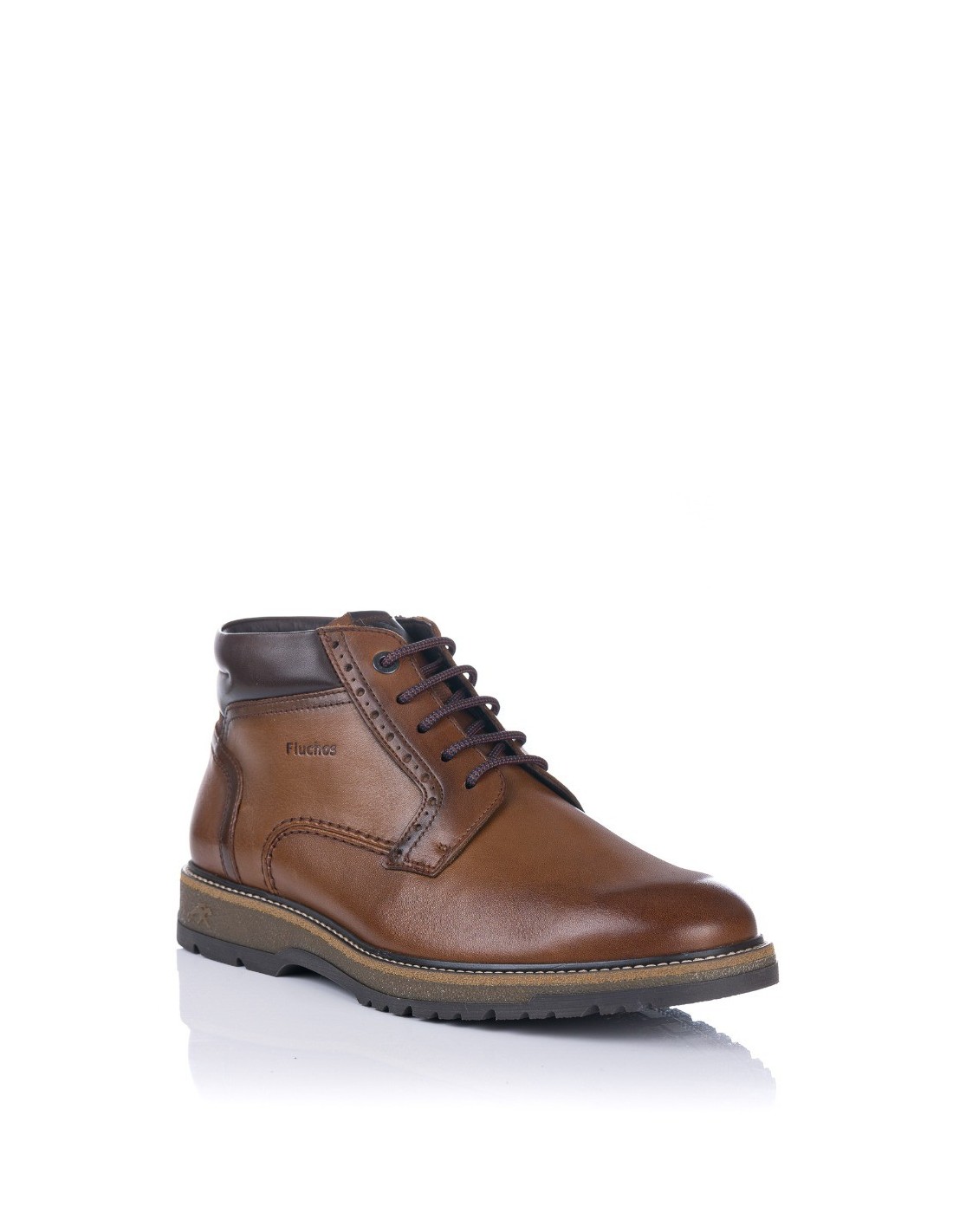 Bota de la marca Fluchos para hombre, realizado en piel de primera calidad. Cierre mediante cordones y cremallera interior que facilitan un mejor ajuste al pie. Plantilla acolchada y extraíble para una mayor comodidad. Suela de goma antideslizante y flexible. Modelo diseñado para un uso diario, combinando el confort absoluto con el diseño más elegante. Fabricado en España.