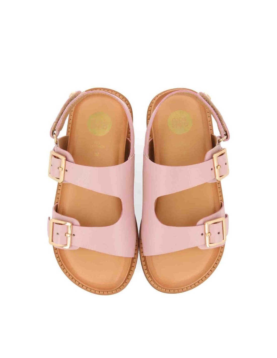 Lanusei sandalia de la marca Gioseppo para niña, realizada en piel en color off-white tipo Bio con hebillas sobre el empeine y tira trasera con velcro para la autonomía de los más peques. Planta de látex acolchada que suaviza la pisada y vira con detalle de pespuntes. Un modelo sostenible:”Have a nice world” fabricado en las mejores condiciones y con los menores impactos medioambientales.