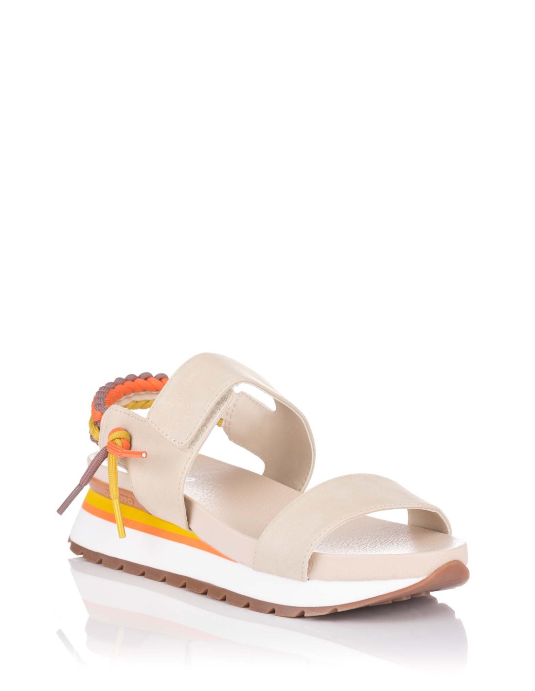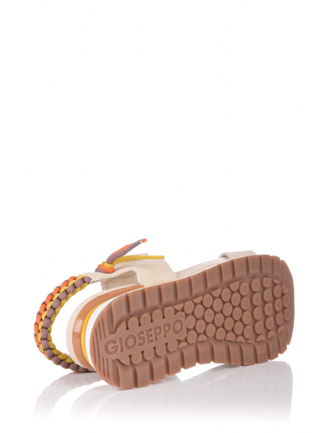 Sandalia de la marca Gioseppo para mujer, realizada en piel sintética efecto suave. Cierre mediante velcro en la pulsera tobillera y tira trasera elástica para un mayor ajuste. Media suela de eva y suela de goma para una mayor ligereza y mejor agarre.
