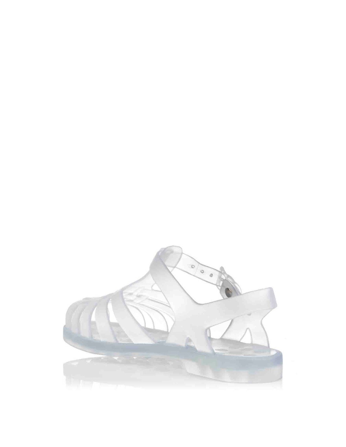 Sandalia cangrejera unisex de la marca Igor, elaborada en goma transparente, con cierre de hebilla ajustable. La cangrejera de siempre, para la playa, la piscina o el río que no resbala. Fabricado en España.