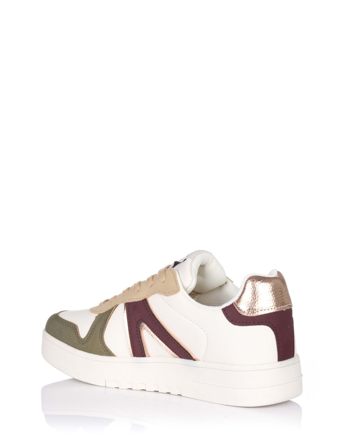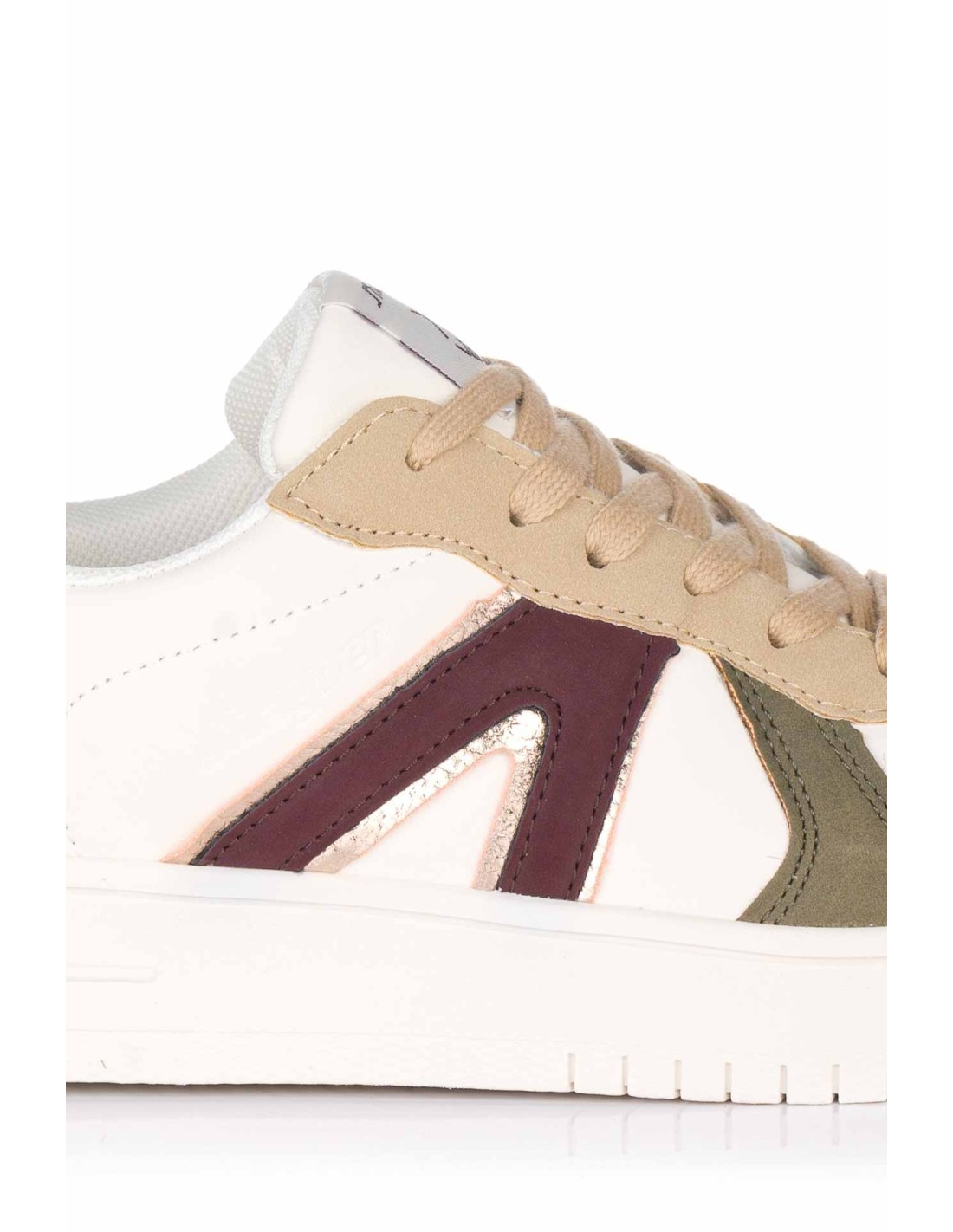 Zapatilla casual de la marca J´Hayber estilo retro para mujer, realizado en piel sintética con perforaciones para una mejor transpiración. Su plantilla foam insole aporta una mayor amortiguación con cada paso. Detalles de la marca y "V" invertida a modo de adorno en el lateral exterior.