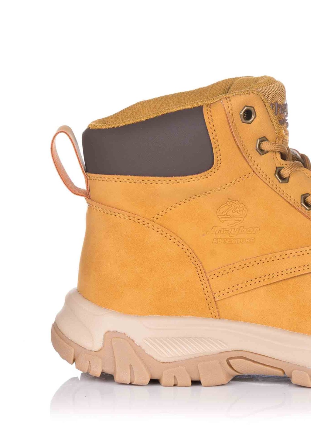 Botín para mujer de la marca J´Hayber en color camel con diseño Sport La parte superior presenta piel sintética con cordones y tirador trasero para facilitar el calce. Plantilla insole extraíble y suela de goma antideslizante.