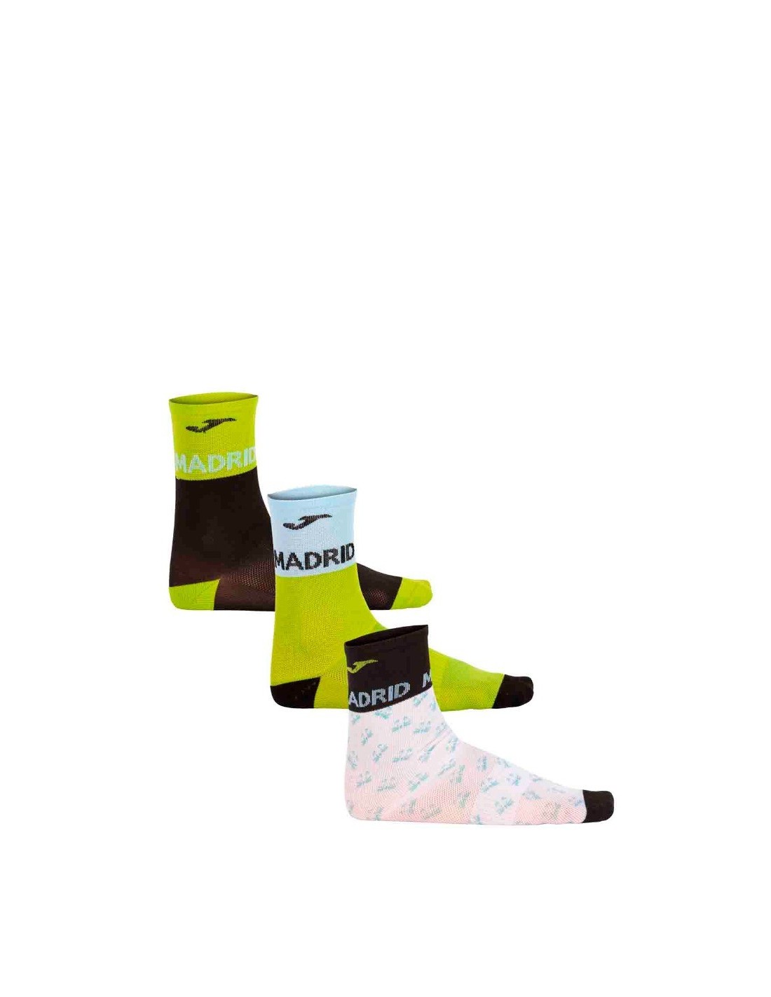 Pack de 3 calcetines de la marca Joma para hombre, realizados en 90- Poliéster y 10- Elastano, en tejido ligero, transpirable y flexible que brinda el mayor frescor, sequedad y confortabilidad al deportista.