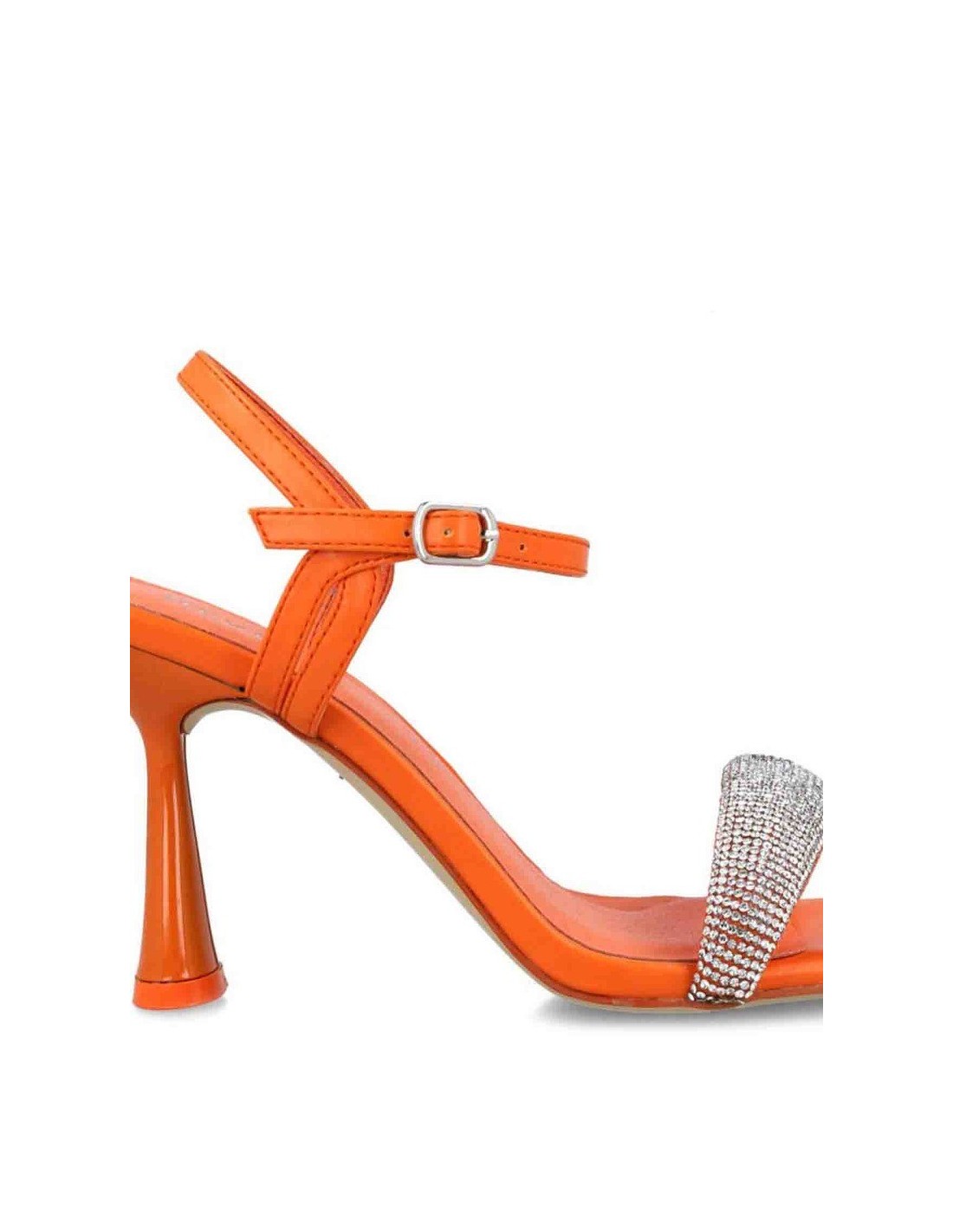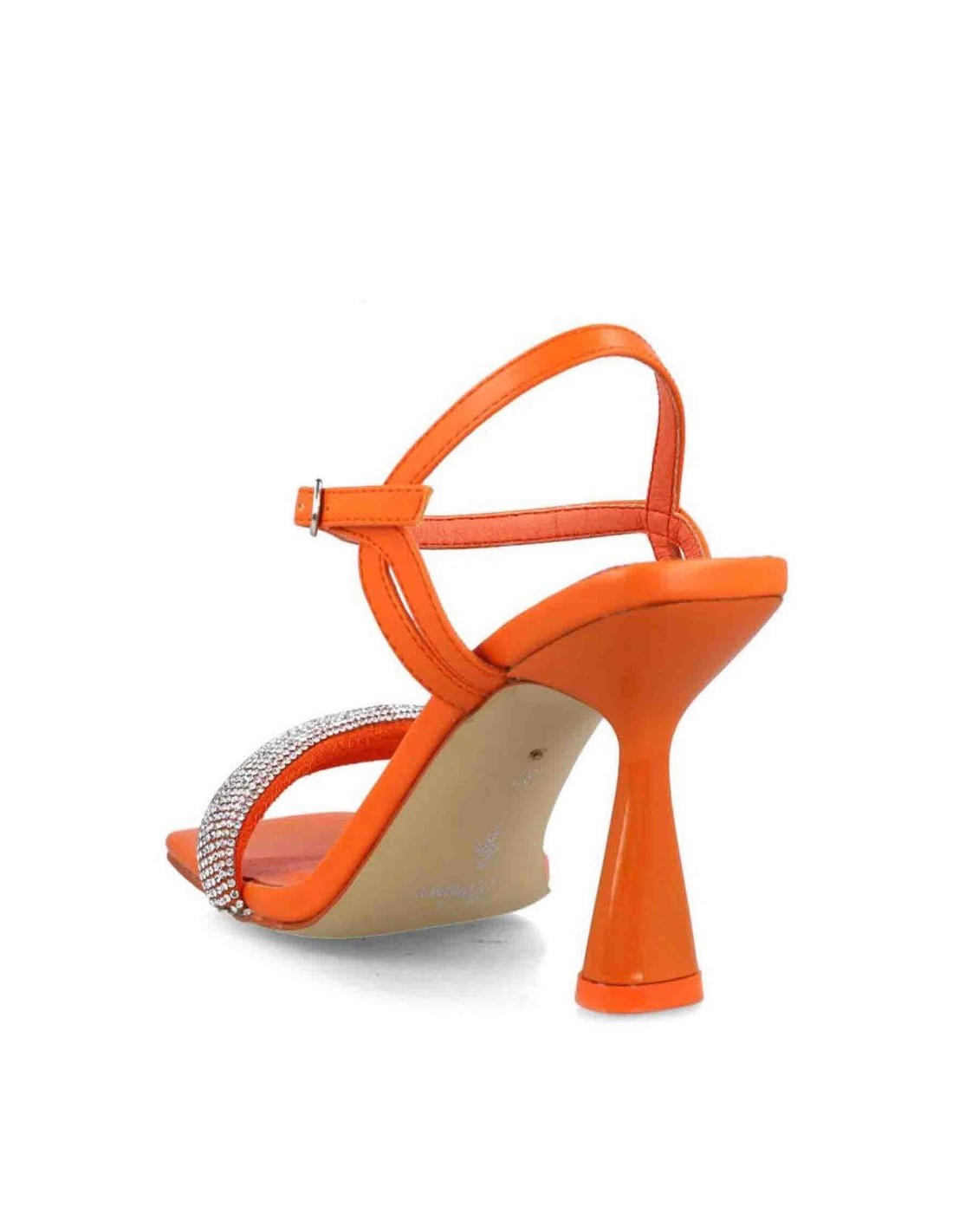 Sandalia de fiesta Menbur con tacón fino, fabricada en material sintético con diseño de tira en la pala con incrustaciones de pedrería, tira tobillera con cierre de hebilla regulable. Sandalia con un estilo muy elegante para las mujeres que buscan confort.