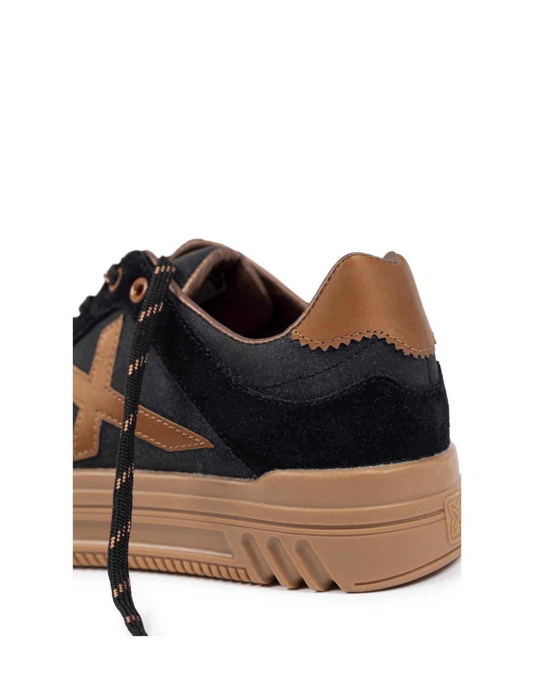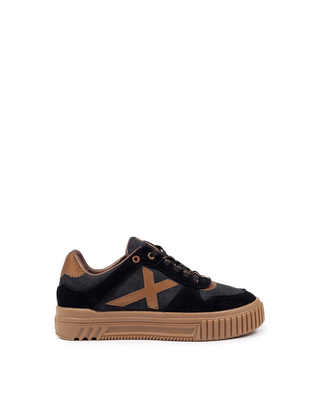 Zapatilla estilo retro con plataforma de la marca Munich para mujer, realizada en combinación de piel, sintético y textil. Detalle del logotipo de la marca en ambos laterales y etiqueta de la marca en la lengüeta. Media suela ligera para amortiguar la pisada y suela de goma. Cierre mediante cordones y plantilla extraíble.