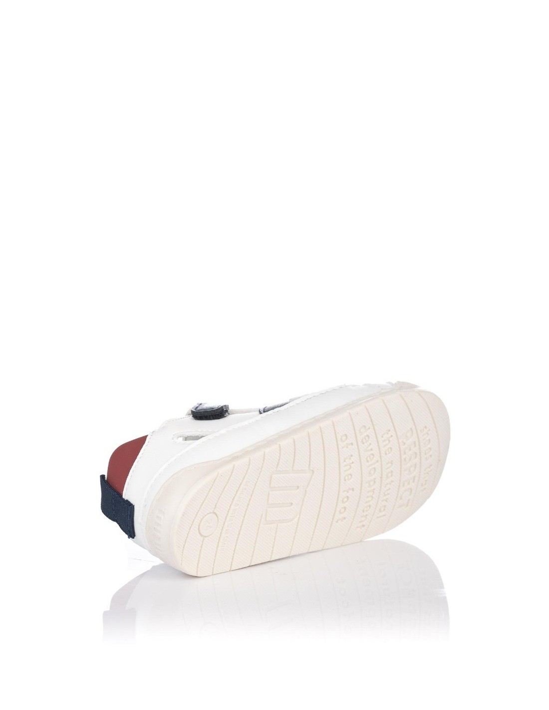 Zapatilla para bebé de la marca Mustang, realizada en piel sintética, forro sintético y suela de goma antideslizante. Cierre de velcro que facilita su calce y ajuste al pie.