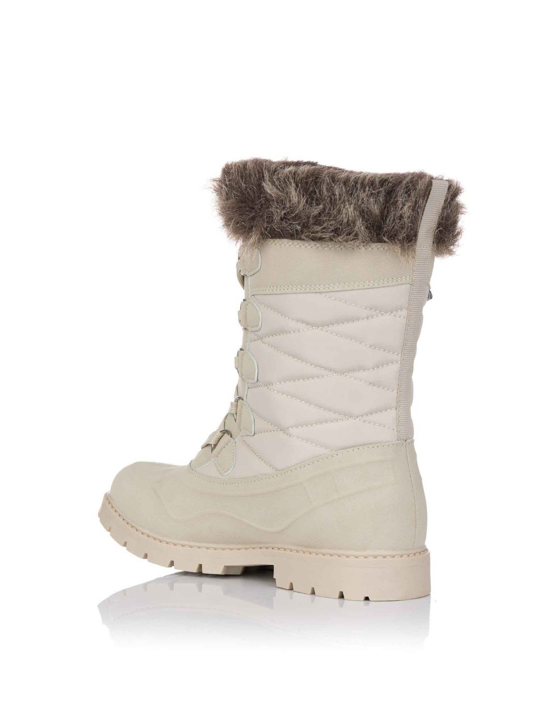 Bota de mujer de la marca Nicoboco. Fabricada mediante paneles de material sintético y textil con sueva pelo invernal en el cuello y lengüeta. Plantilla acolchada y forro con innovadora tecnología waterproof que protege al pie del agua a la vez que permite expulsar el sudor de manera eficaz. Cierre mediante cordones para conseguir un mayor ajuste al pie y suela de goma para un mayor agarre.
