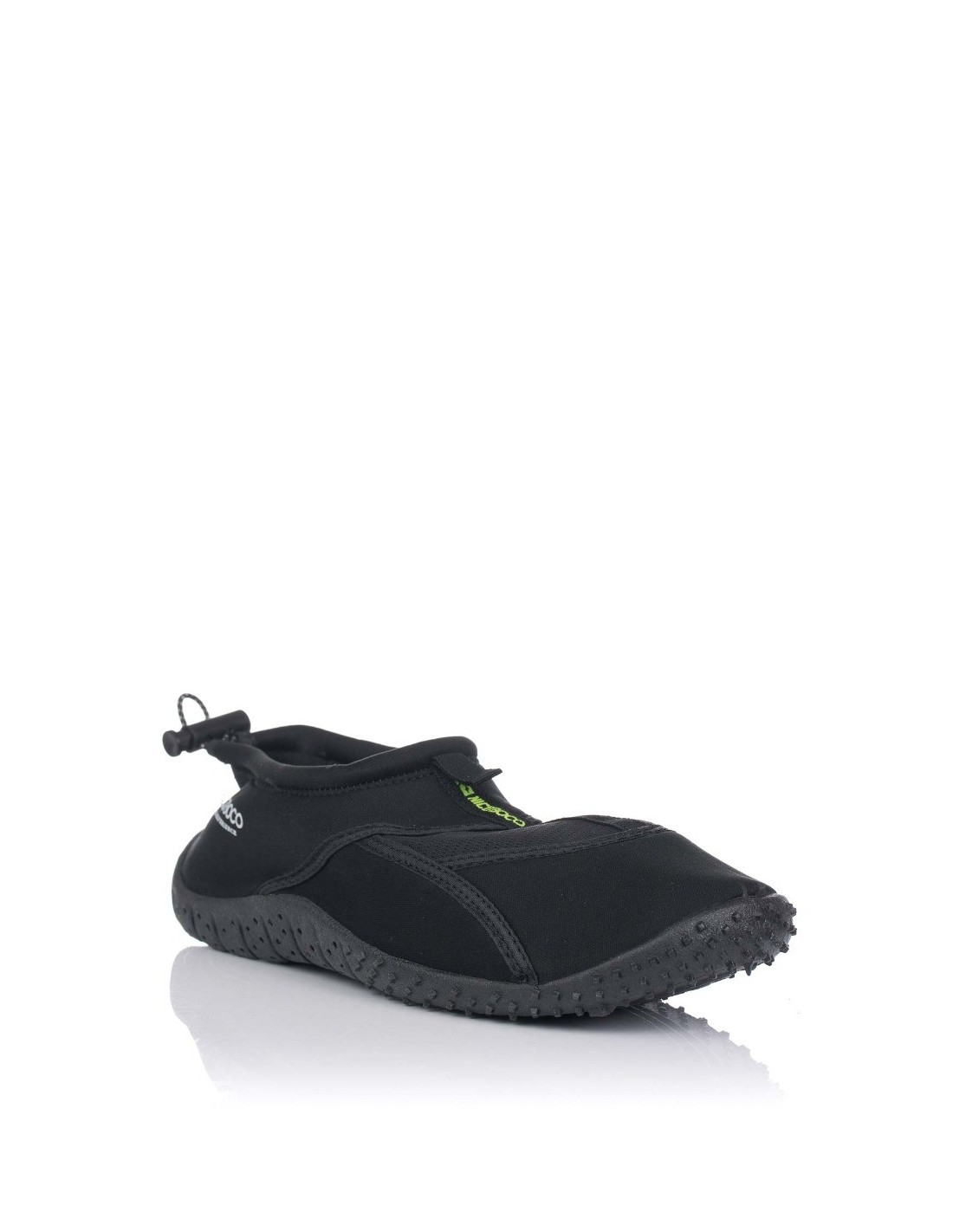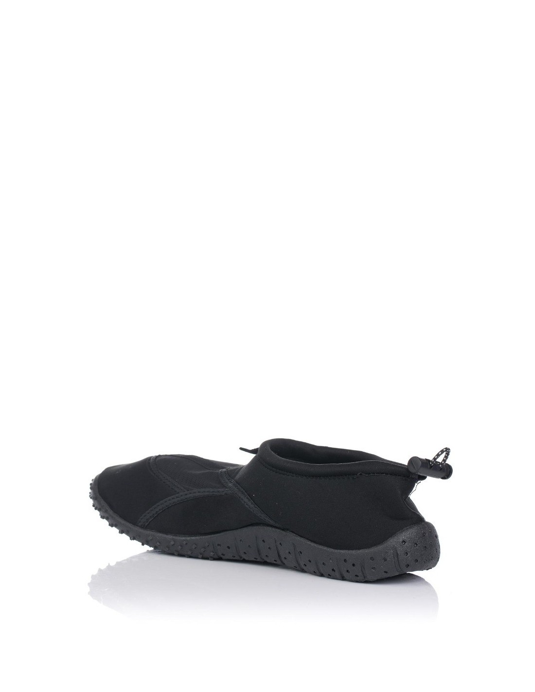 Escarpín de la marca Nicoboco en color negro, cierre mediante elástico para un mayor ajuste al pie. Realizado en material textil de fácil secado, con cierre de goma elástica para un mejor ajuste al pie. Tirador en la zona del empeine para facilitar su calce y suela antideslizante.