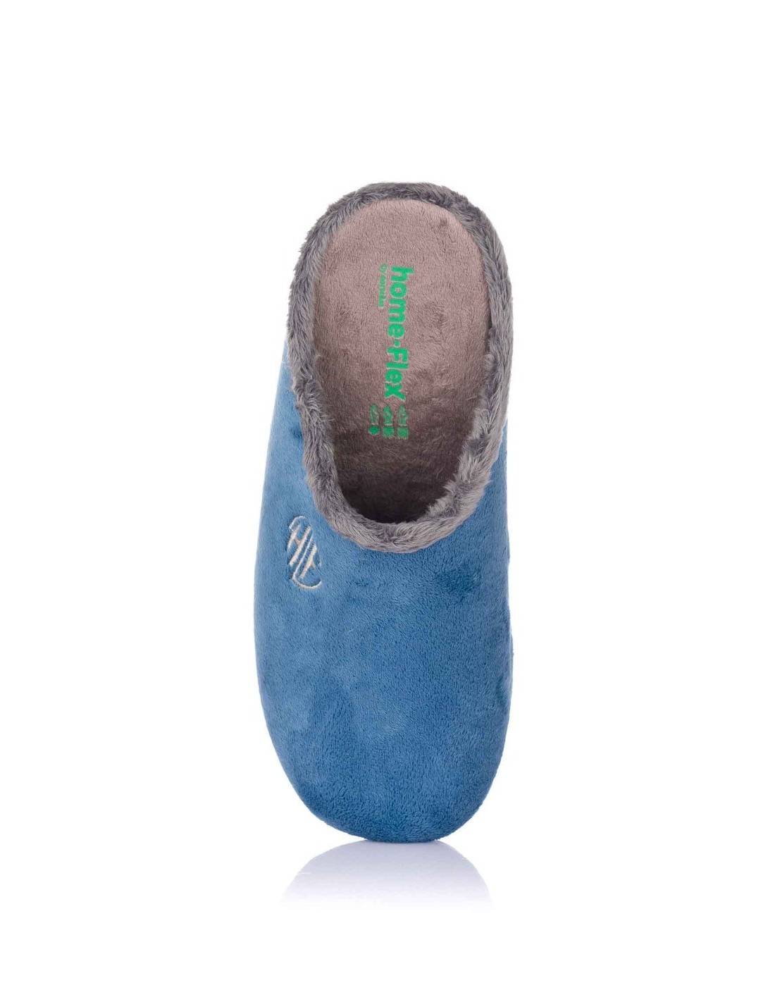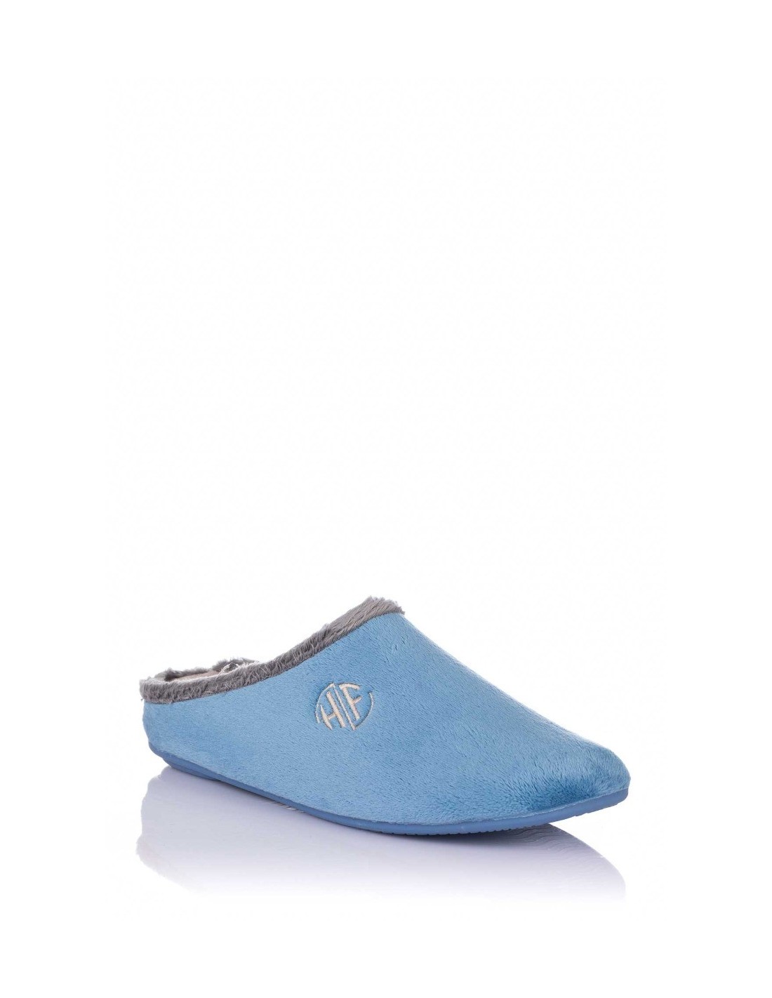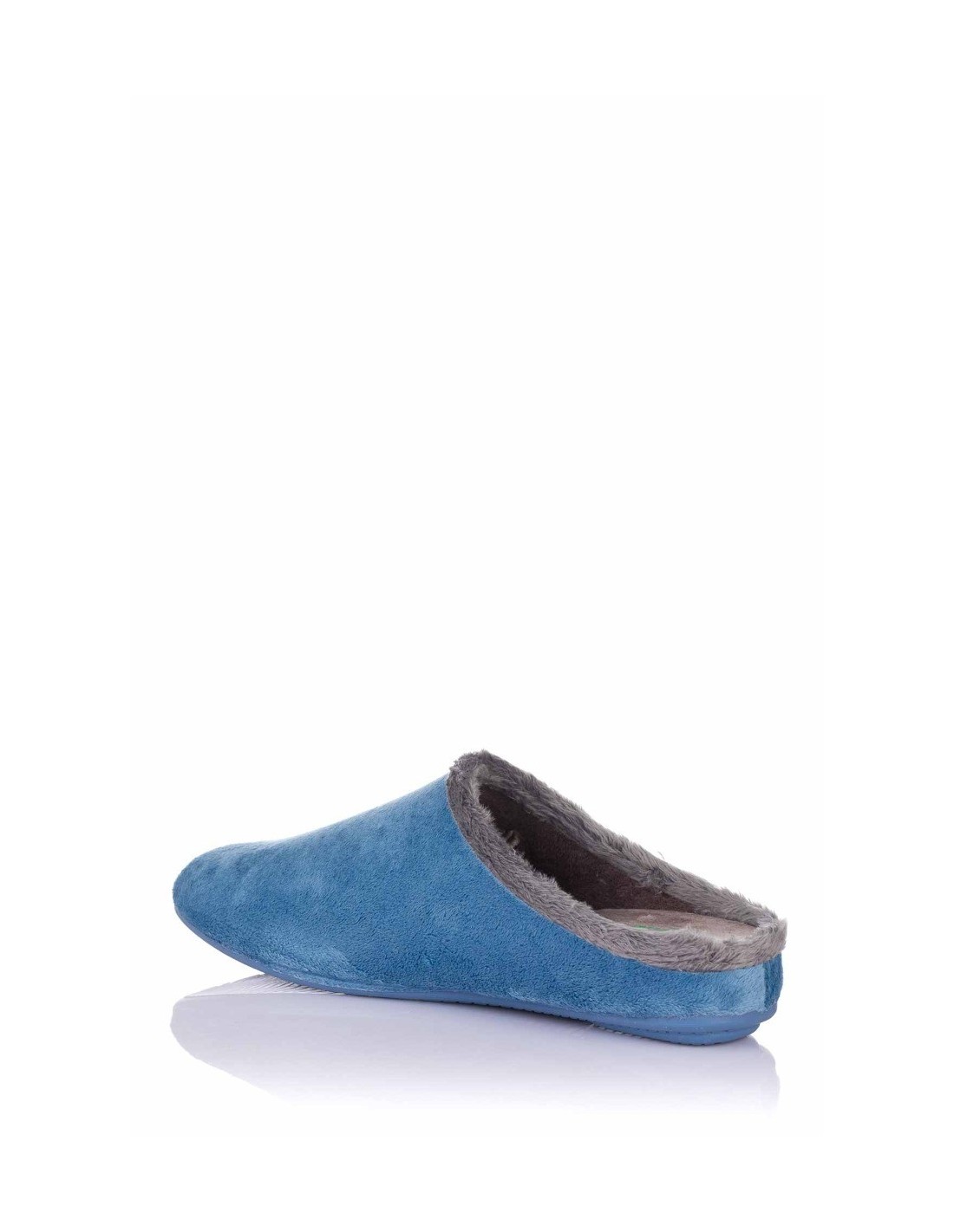 Zapatilla descalza de andar por casa para mujer, realizada en material textil con ribete y forro de pelo. Costura vista en la parte central del empeine y detalle de la marca cosido. Suela de goma flexible y antideslizante. Fabricado en España.