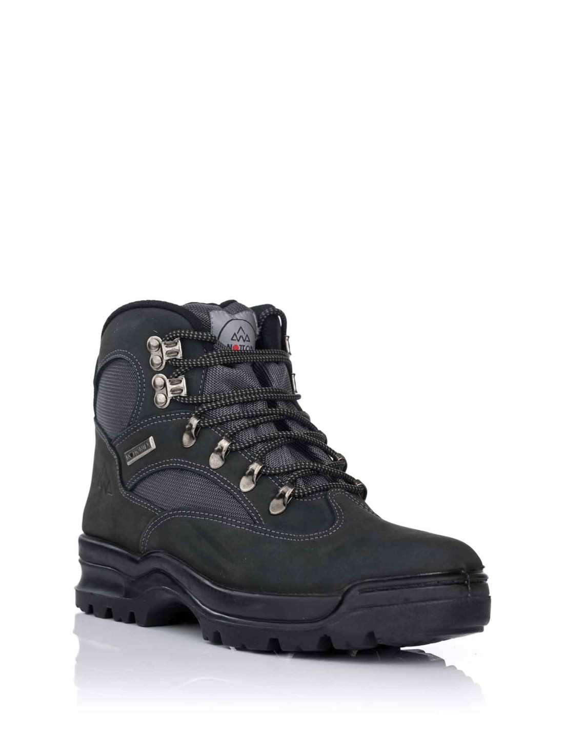 Botas trekking unisex, realizada en piel nobuck combinada con textil y membrana impermeable “Nottontex”. Plantilla acolchada y extraíble. Suela de goma natural. Fabricada en España.