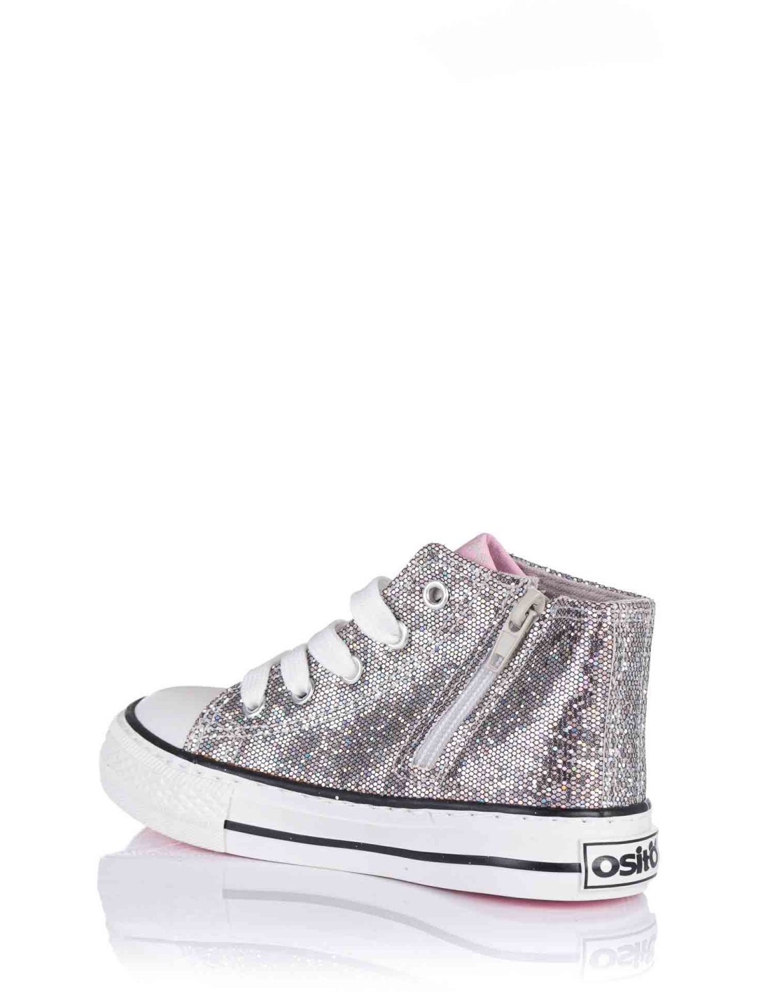Bota basket para niña, realizada en material sintético glitter, forro textil y suela de goma antideslizante. Doble cierre, mediante cordonera central y cremallera interior que facilita su calce y ajuste al pie. Logo de la marca Osito en el lateral. Diseño actual y desenfadado para los más pequeños de la casa.