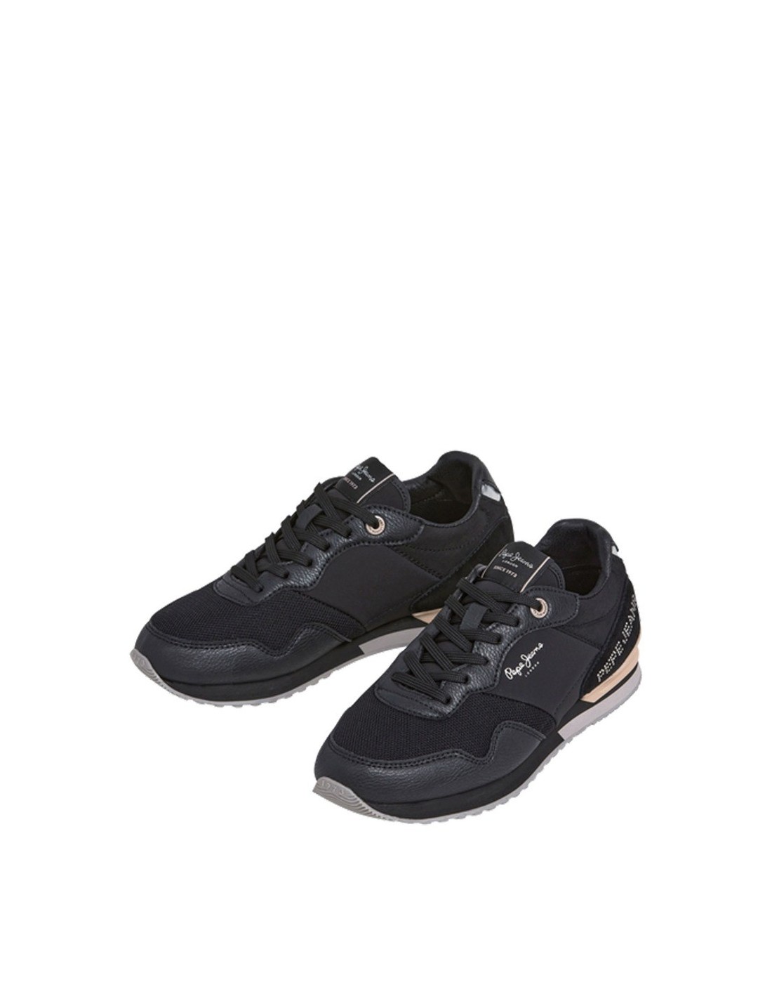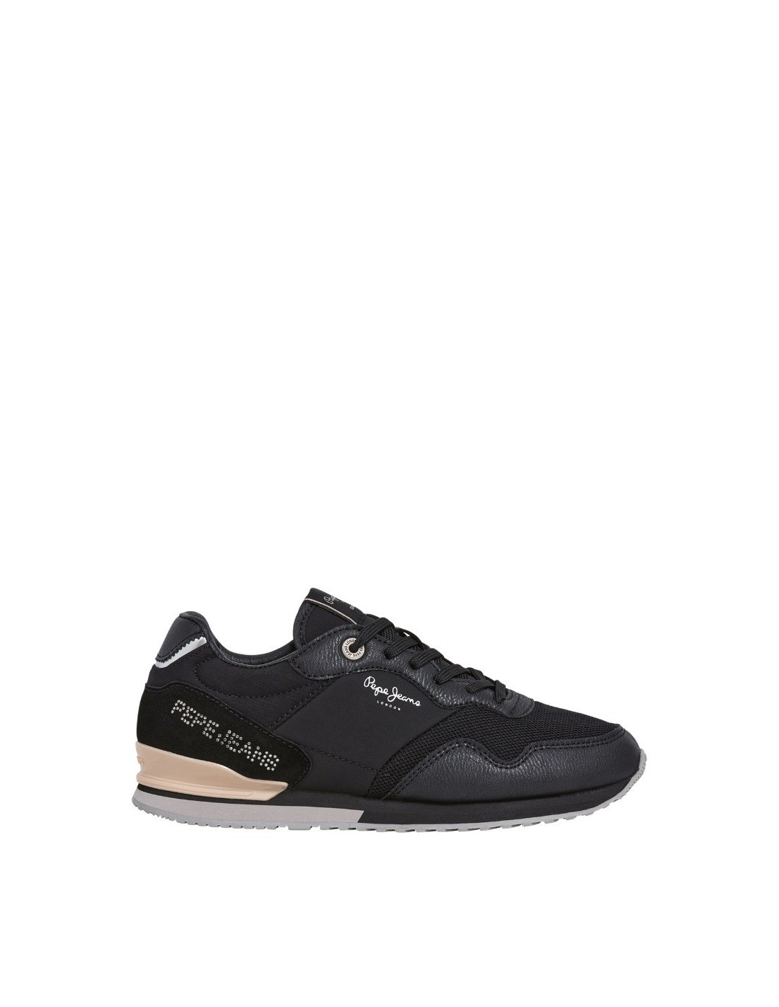 Zapatilla casual de la marca Pepe Jeans para niña o mujer, realizada en piel serraje sintética combinada con paneles en textil. Suela de Eva y goma con estabilizador en el talón y logo latera realizado en brillantes. Cierre mediante cordón para un perfecto ajuste al pie.