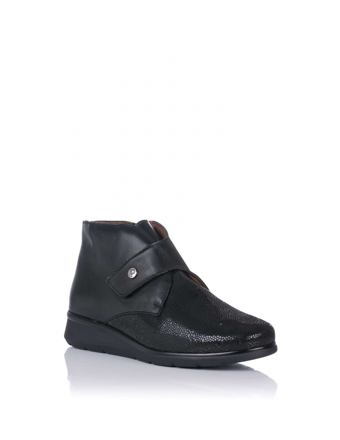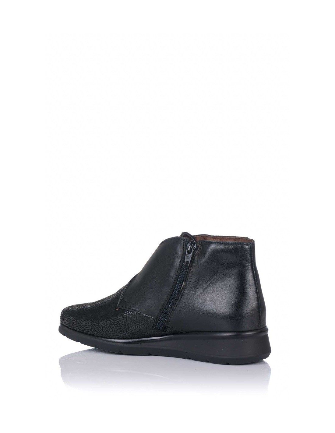 Botín para mujer de la marca Pitillos, realizado en piel combinada en lisa y grabada. Forro interior en textil suave al tacto y plantilla extraíble. Cierre con cremallera lateral facilitar el calce.