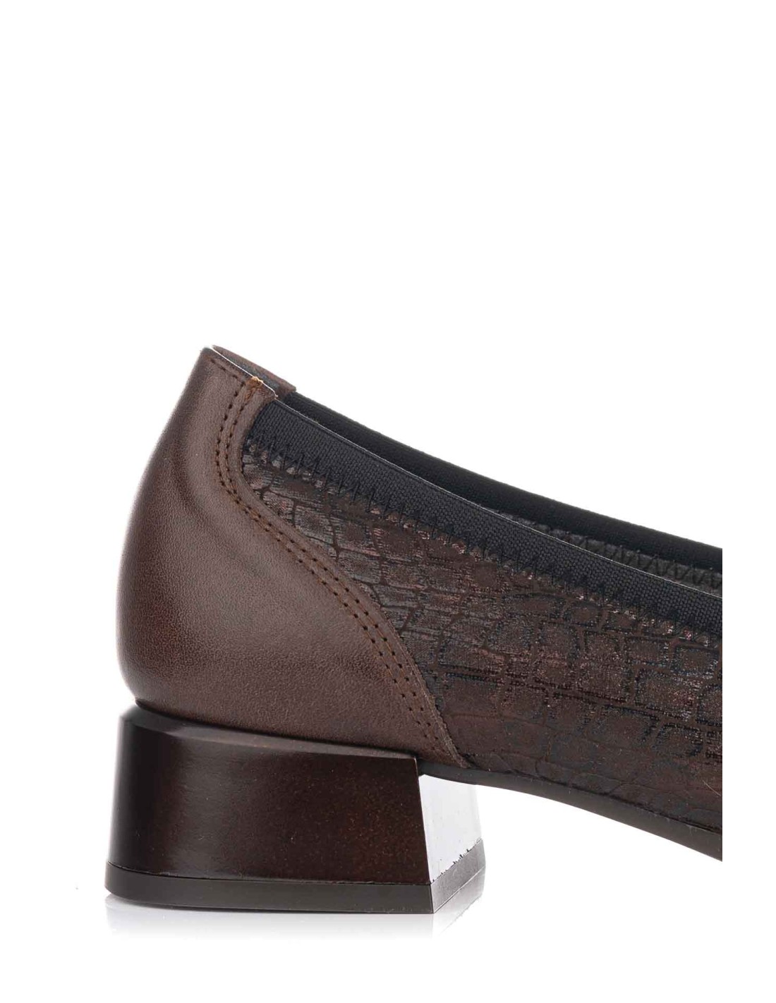 Zapato de salón de mujer, realizado en pie de primera calidad, en color bronce combinado con print serpiente. Forro interior en textil de suave y plantilla extraíble. Fabricado en España por la marca Pitillos