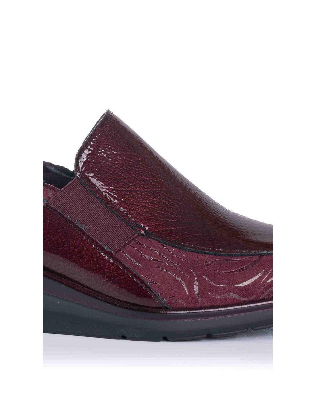 Zapato mocasín para mujer de la marca Pitillos, realizado en combinación de piel charol y textil. Forro interior en textil y plantilla extraíble. . Elásticos laterales para un mayor ajuste al pie. Características: Termal Super Absorbent. Forro y plantilla transpirable, absorbe el sudor combatiendo la aparición del olor. Además de proporcionar una agradable sensación de confort y bienestar.