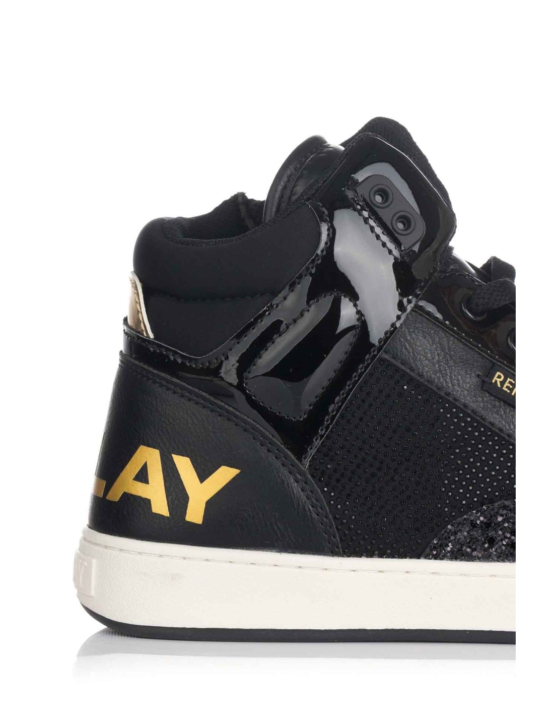 Botín casual para mujer de la marca Replay, realizada en material textil con refuerzos en charol sintético. Doble cierre mediante cordones y cremallera lareral para facilitar el calce. Pequeños brillantes a lo largo de todo el modelo y detalle de la marca en el talón. Plantilla acolchada para una mayor comodidad y suela de goma dentada para una mayor ligereza.