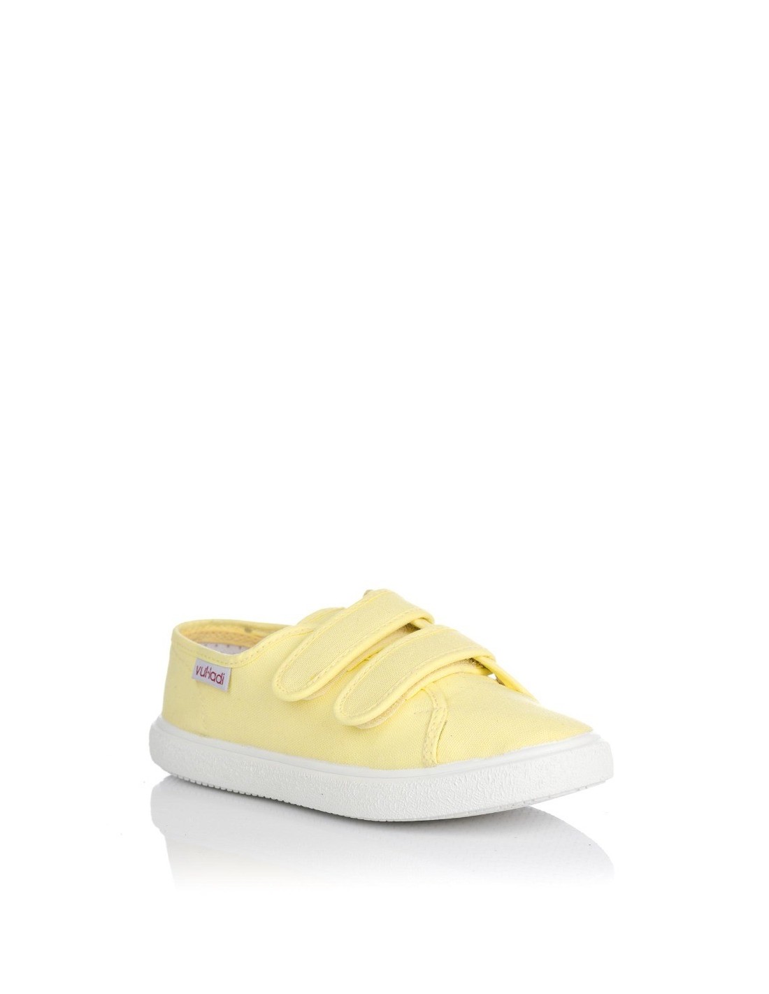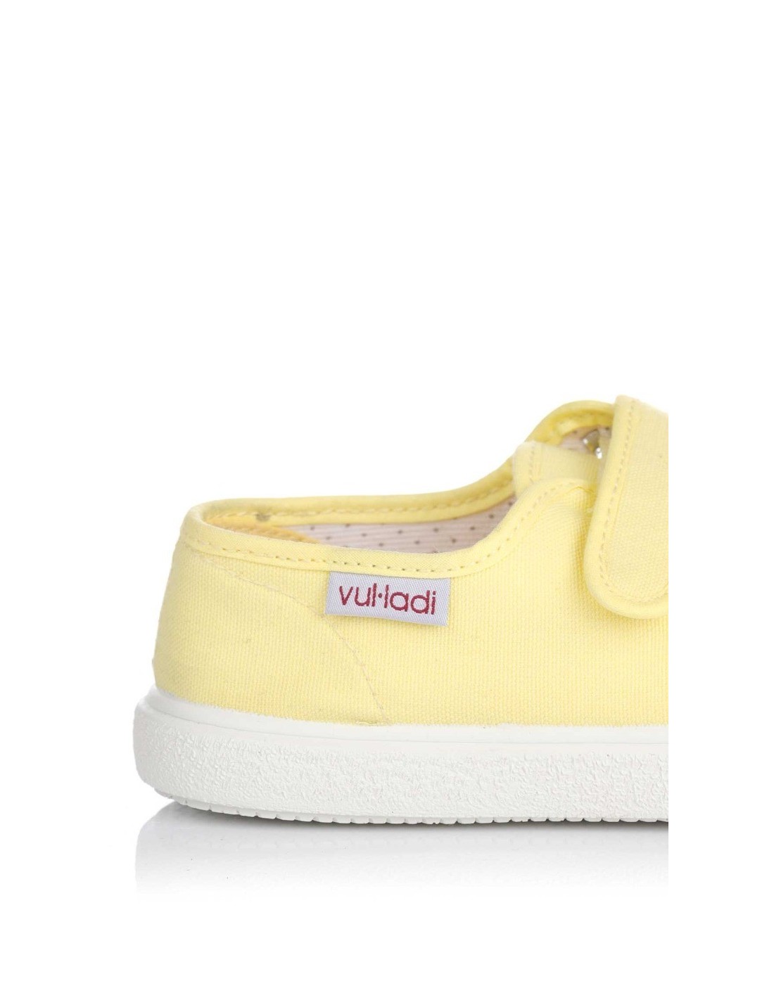 Zapatilla en lona resistente en color manzana para niño y niña, realizada con materiales de primera calidad, cierre de doble velcro sobre el empeine para un mejor ajuste del pie. No esperes más serán el básico imprescindible para esta temporada. Suela de goma vulcanizada. Fabricado en España por la marca Vul-ladi.