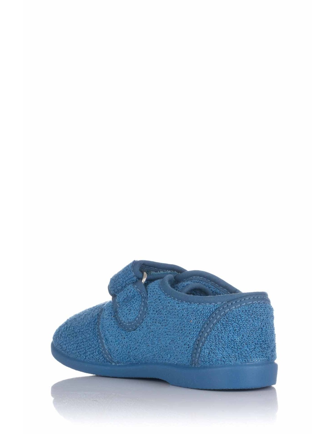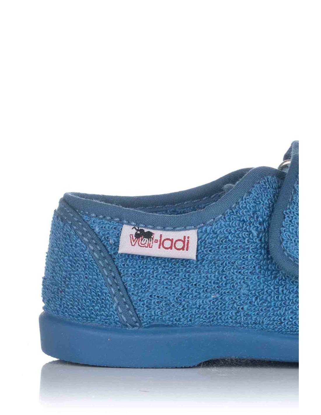 Zapatilla Vul-ladi de niño, realizada en material textil (toalla). Cierre con tira de velcro para facilitar el calce del pie. Suela de goma vulcanizada. Fabricado en España.