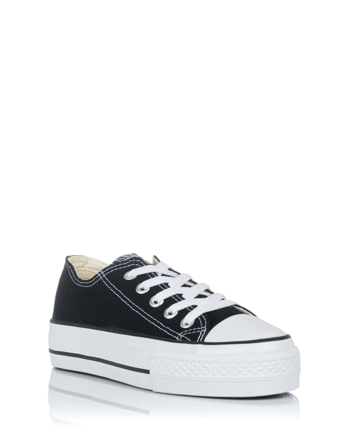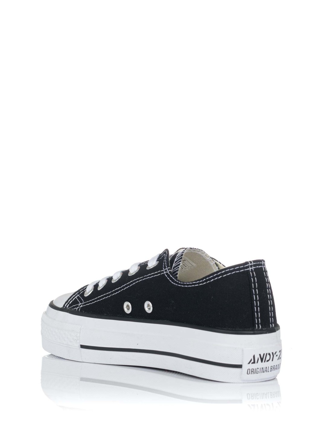 Sneaker tipo basket de la marca Andy-z para niña. Fabricada en lona con forro interior textil y cordonera central de ojales metálicos. Plataforma y puntera en goma blanca con el logo impreso en el talón.Medidas: Plataforma 3 cm.