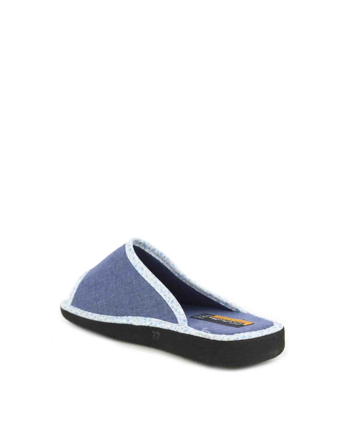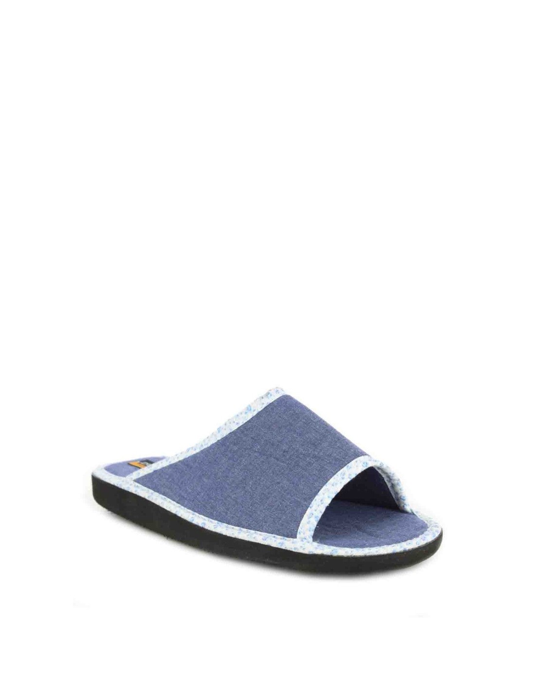 Zapatilla de andar por casa con puntera abierta para mujer, realizada en material textil con ribete en contraste. Suela ligera de Eva. Fabricada en España por la marca Doctor Cutillas.